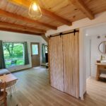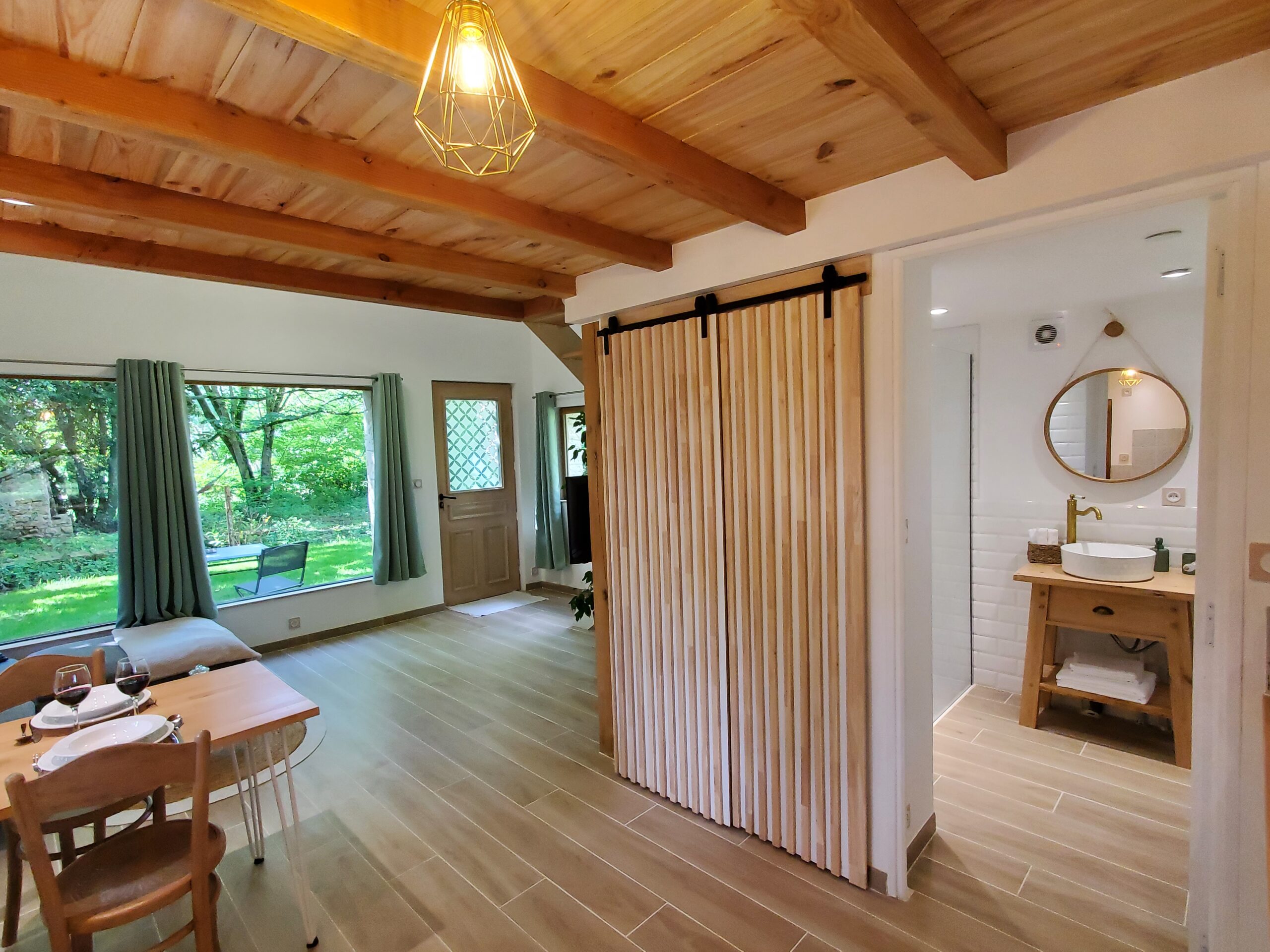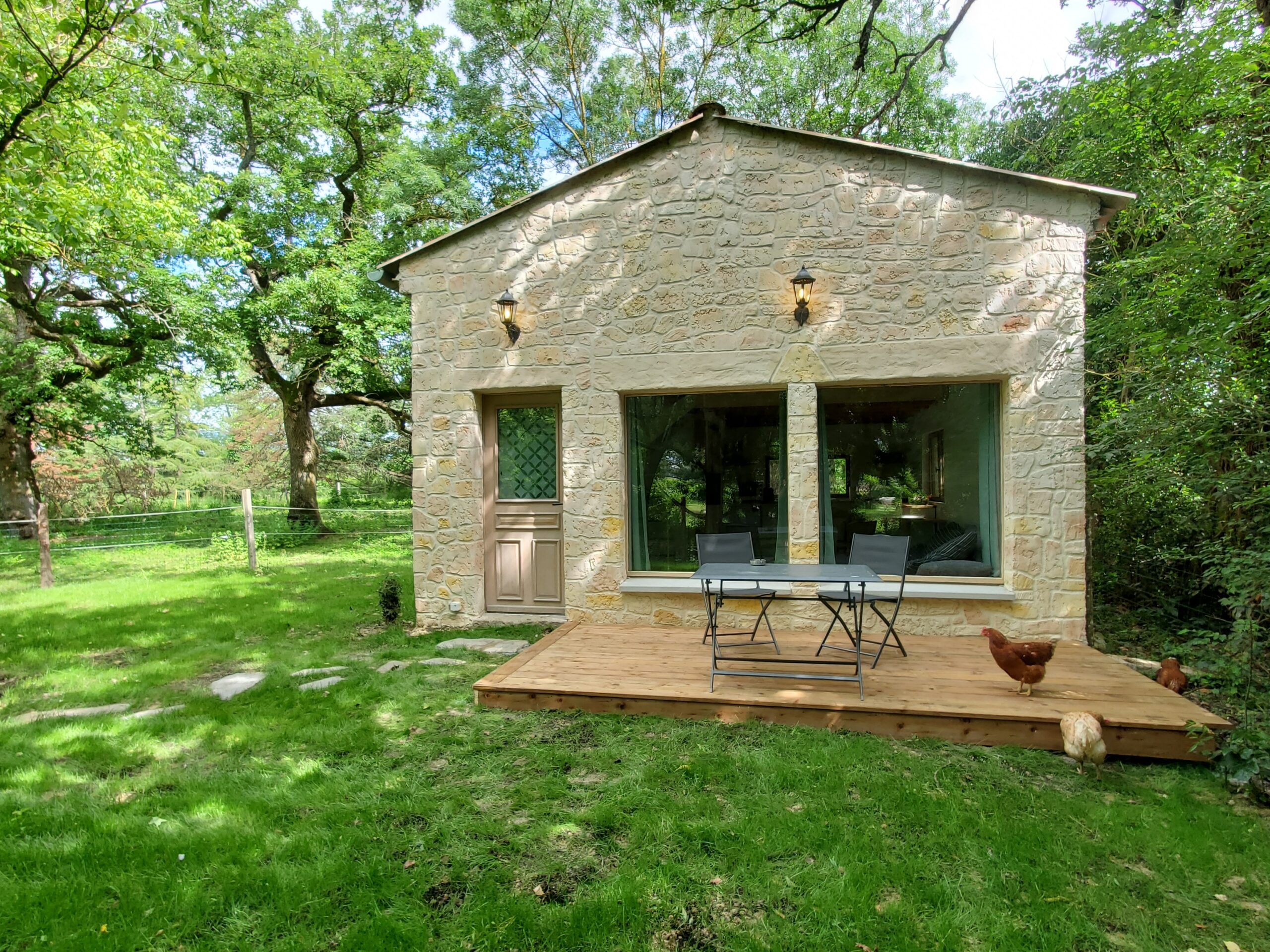 Vous séjournerez dans la chaumière de 30m² qui est sur notre propriété à l’écart de notre maison.
