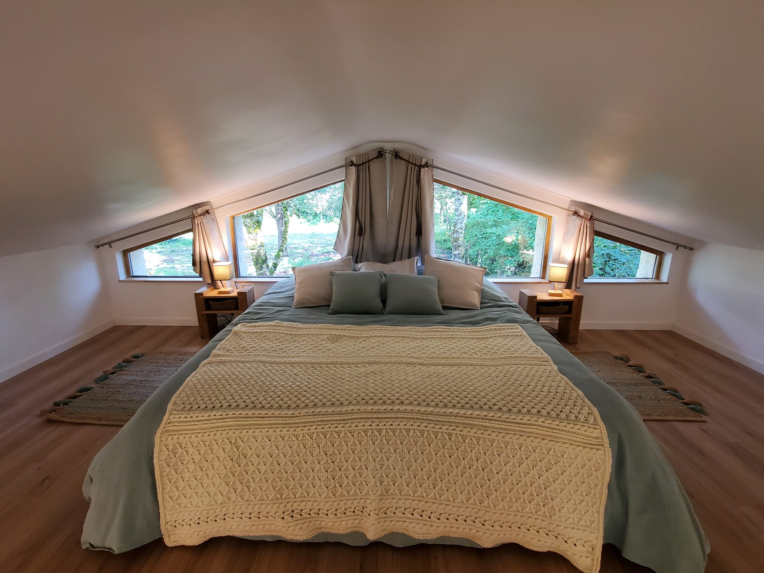 Veuillez noter que l’espace nuit est situé sous un toit en pente, rendant impossible la station debout.